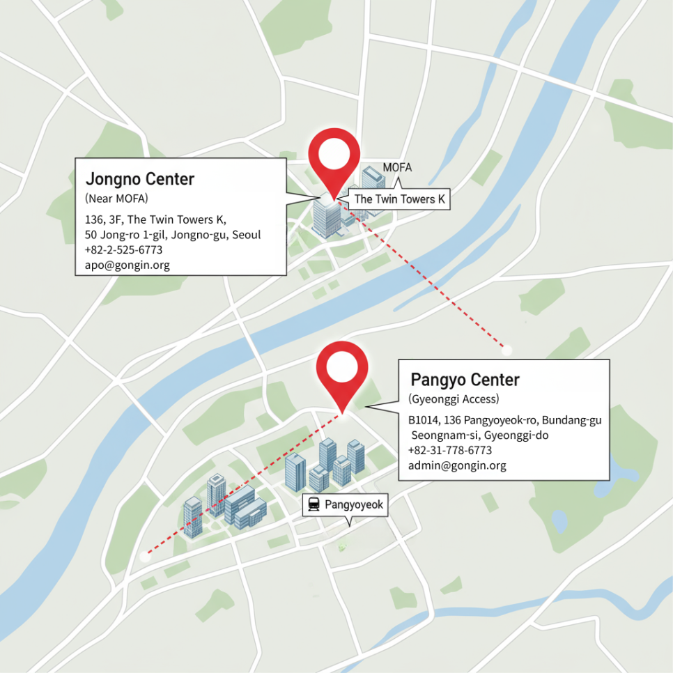 | Jongno Center (Near MOFA) | Pangyo Center (Gyeonggi Access) | |
